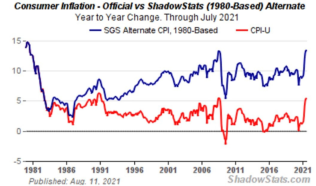 Auf der weiter unten angeführten Statistik, wird die Berechnungsmethode aus dem Jahre 1980 zur Bestimmung der Inflation, mit der heutigen verglichen. Allerdings gilt es zu beachten, dass diese Darstellung aus Daten der USA resultiert.