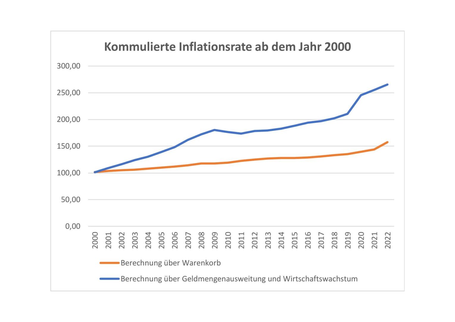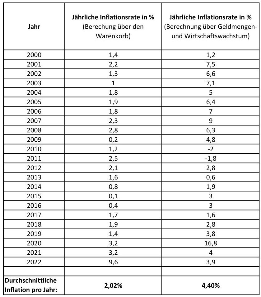 Mit dem ständigen Verlust unserer Kaufkraft, werden wir seit jeher konfrontiert, weil das System eine gewisse Inflation für notwendig hält. Durch die Geldmengenausweitung in der Euro-Zone, infolge von Corona und anderen Rechtfertigungen den Markt mit Geld zu fluten, erlebten wir in den letzten Jahren eine Inflationswelle, welche in Deutschland im Hoch offiziell mit 8,8 % bemessen wurde.